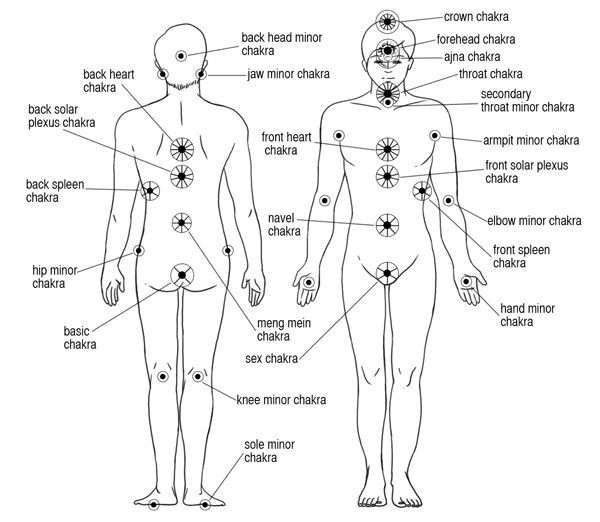 Acupuncture follows an ancient and very detailed map of the energy body (there are literally hundreds of points in acupuncture and the channels running between them are called meridians). I follow a simpler but equally effective system focussing on the 7 major chakras, which are located along the length of the spine, and some of the minor chakras, especially those located at the main joints in the body. Each of the major chakras regulate the organs and systems found in that area of the body. Each chakra also regulates particular aspects of our mental and emotional wellbeing.